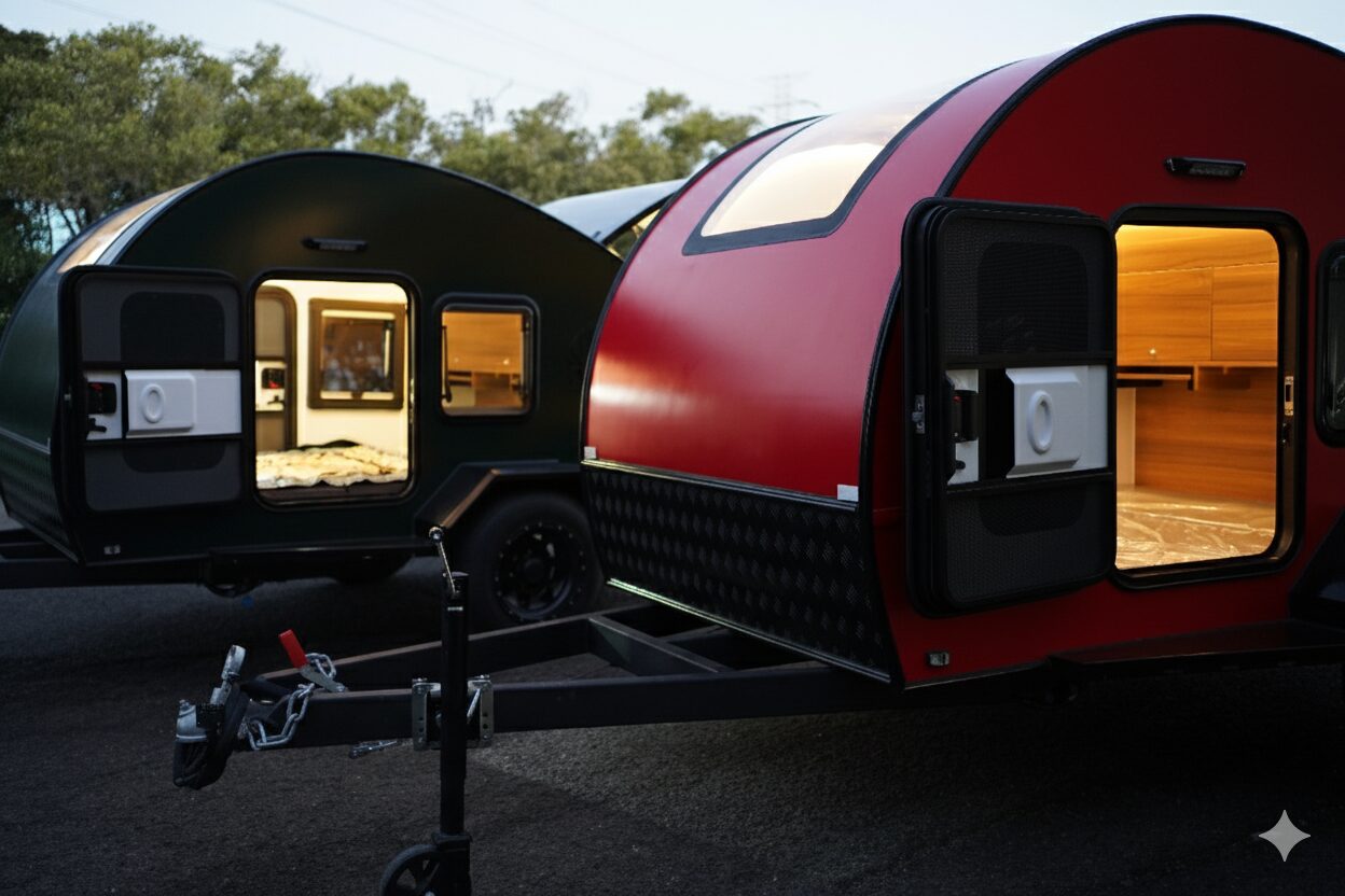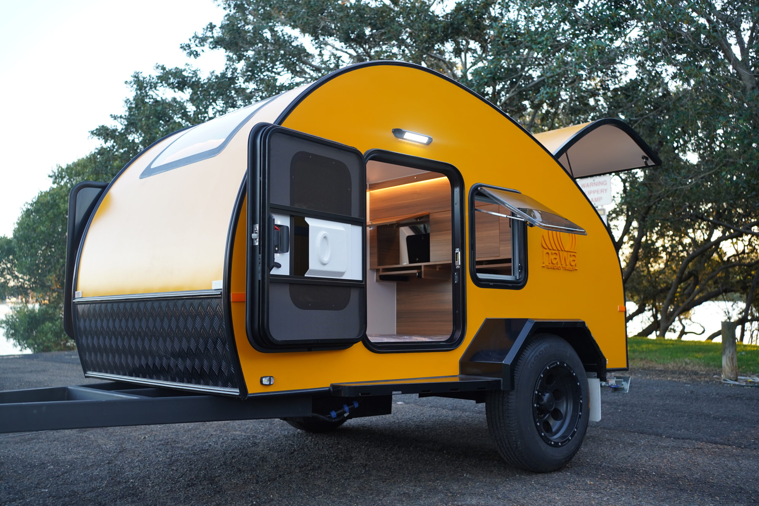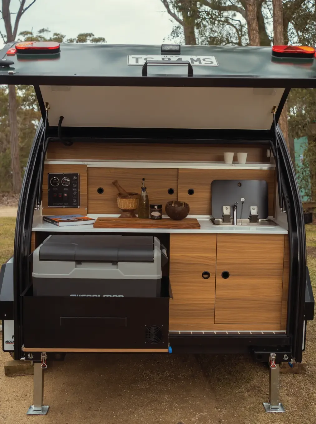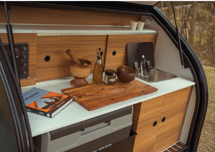 The Iwana Landscape is a fresh take on the classic teardrop trailer — pairing timeless looks with everything you need for life on the road. With its streamlined aluminium body and clean design, it’s as practical as it is easy on the eyes. Inside, you’ll find a fully insulated cabin to keep you comfy year-round, along with a well-appointed kitchen that makes camp cooking simple and stress-free. A large skylight brings the outside in, while clever storage throughout means you’ve got room for all your gear without the clutter. Tipping the scales at just 750 kg , the Iwana Landscape is light, nimble, and easy to tow — whether you’re heading for a weekend in the bush, a coastal escape, or the long road west. It’s freedom, comfort, and good design all rolled into one.
