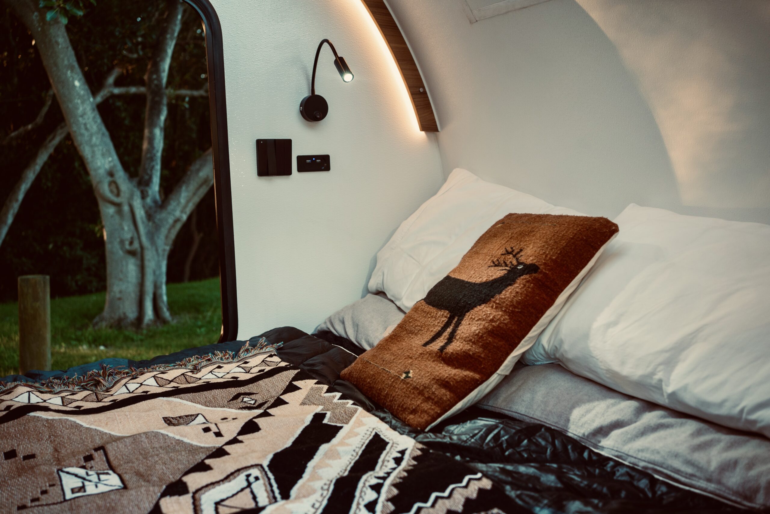 • Sleeping area with a sponge mattress (1.2 m × 2.1 m), converts to sofa
